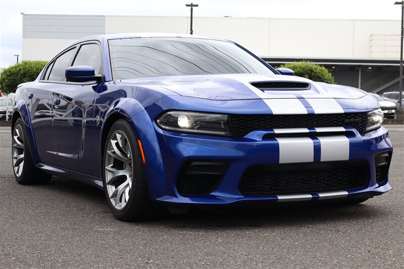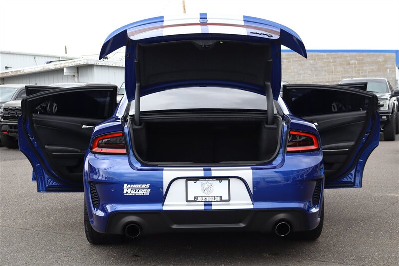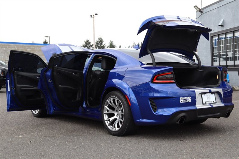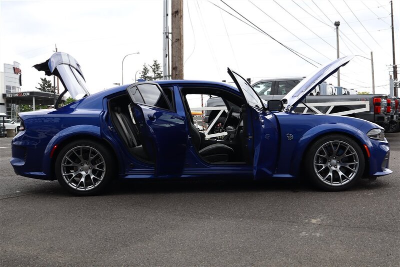 2022 DODGE CHARGER SRT HELLCAT REDEYE WIDEBODY JAILBREAK 6.2L V8 SUPERCHARGEDCustomer Preferred Package 27D High Performance Engine Controller Indigo Blue Exterior Paint Black / Hammerhead–Gray Interior Colors Hellcat Logo Laguna Leather Seats Widebody Competition Suspension Launch Assist Brembo® 6–Piston Fixed Front Caliper Brakes BLACK Brake Calipers SRT® Configurable Drive Modes 220–MPH Primary Speedometer SRT® Performance Pages HEATED COOLED SEATS 19 Harman Kardon® GreenEdge® Speakers 20" x 11" Warp–Speed Satin Carbon Wheels HAVE THREE RED KEYS LOADED