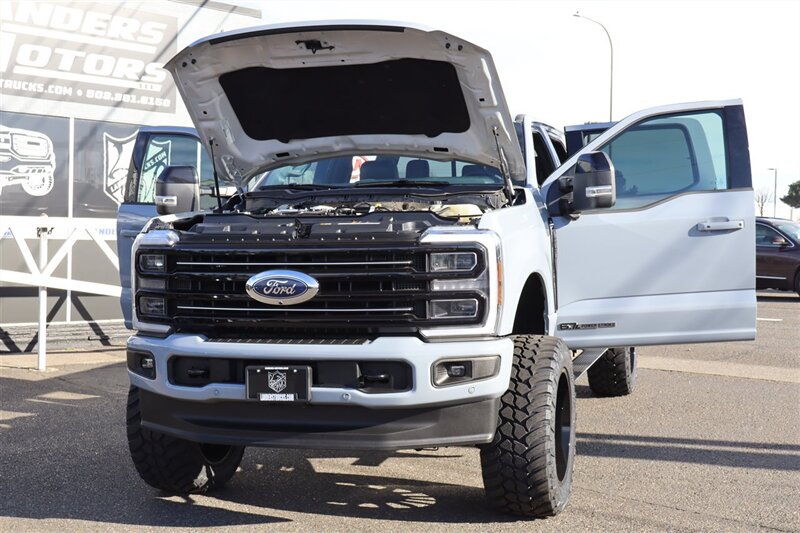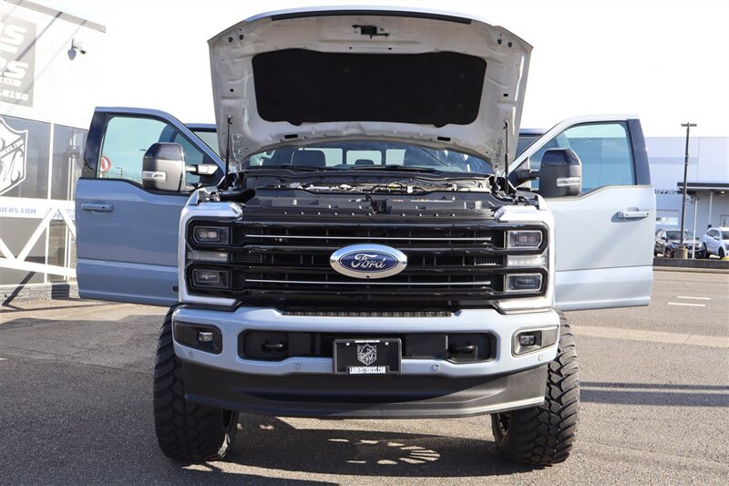 2025 F350 SRW 4X4 CREW CAB PLATINUM 6.7L POWER STROKE V8 DIESEL 10-SPEED AUTOMATIC PREFERRED EQUIPMENT PKG.713A POWER RUNNING BOARD MOONROOF POWER-TWIN PANEL 410 AMP ALTERNATOR HEADS UP DISPLAY POWER TAILGATE 360 CAMERA 12000# GVWR PACKAGE 6" LIFT 22" RIMS 37" TIRES LOADED