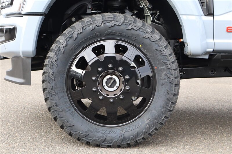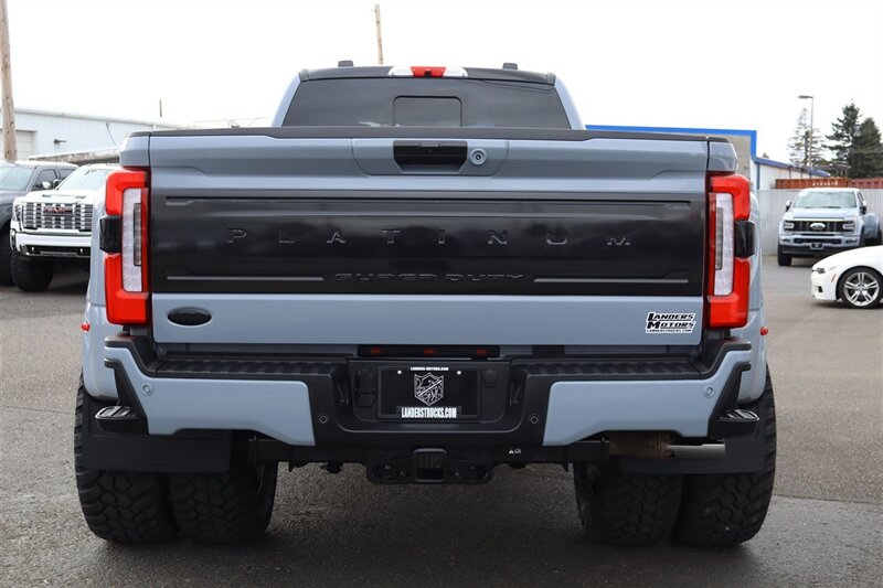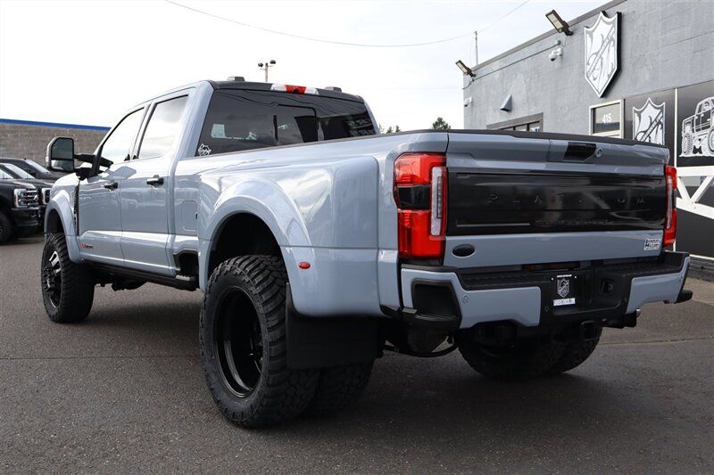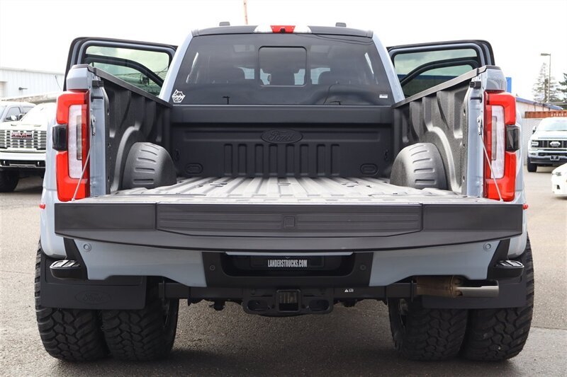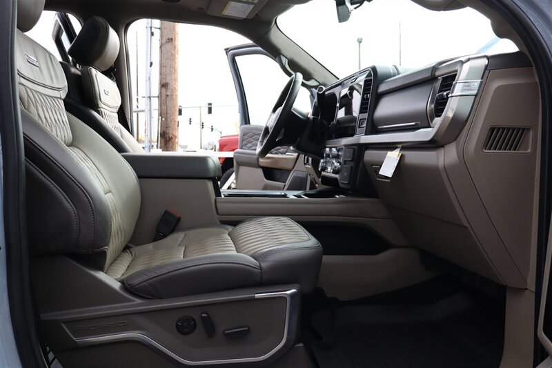 2025 F450 4X4 CREW CAB PLATINUM 4X4 LONGBED GLACIER GREY METALLIC SMOKED TRUFFLE LEATHER PREFERRED EQUIPMENT PKG.770A PLATINUM PLUS PACKAGE 6.7L POWER STROKE V8 DIESEL 10-SPEED AUTO TORQSHIFT 14000# GVWR PACKAGE POWER MOONROOF - TWIN PANEL MAX RECLINE DRIVER/PASS SEATS 360 DEGREE CAMERA B&O UNLEASHED SOUND SYSTEM LVLED ON 22" FORGED RIMS AND 37" TIRES LOADED