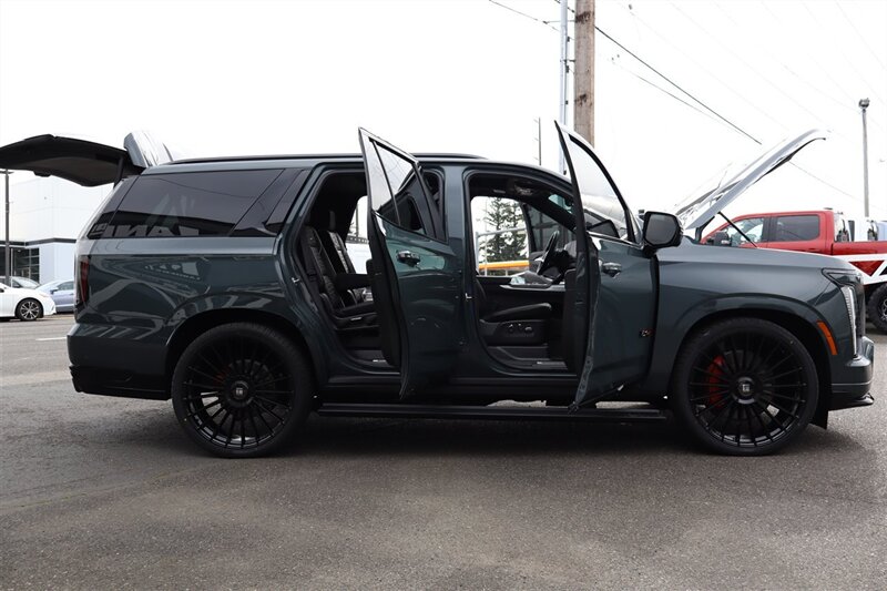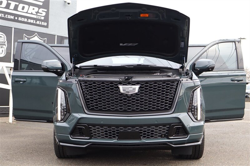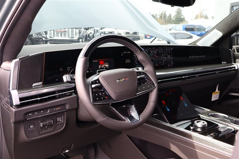2026 ESCALADE V-SERIES AWD AEGEAN STONE EXTERIOR JET BLACK INTERIOR 6.2L SUPERCHARGED V8 ONYX PACKAGE LACK ILLUMINATED CADILLAC EMBLEM 26" RIMS CARBON FIBER INTERIOR DECO INTERIOR CAMERA NIGHT VISION HD SURROUND AKG STUDIO REFERENCE 38 SPEAKER AUDIO SYSTEM VISION SUPER CRUISE HEAD-UP DISPLAY 55" TOTAL DIAGONAL CURVED DISPLAY AIR RIDE ADAPTIVE SUSPENSION TOW PACKAGE LOADED